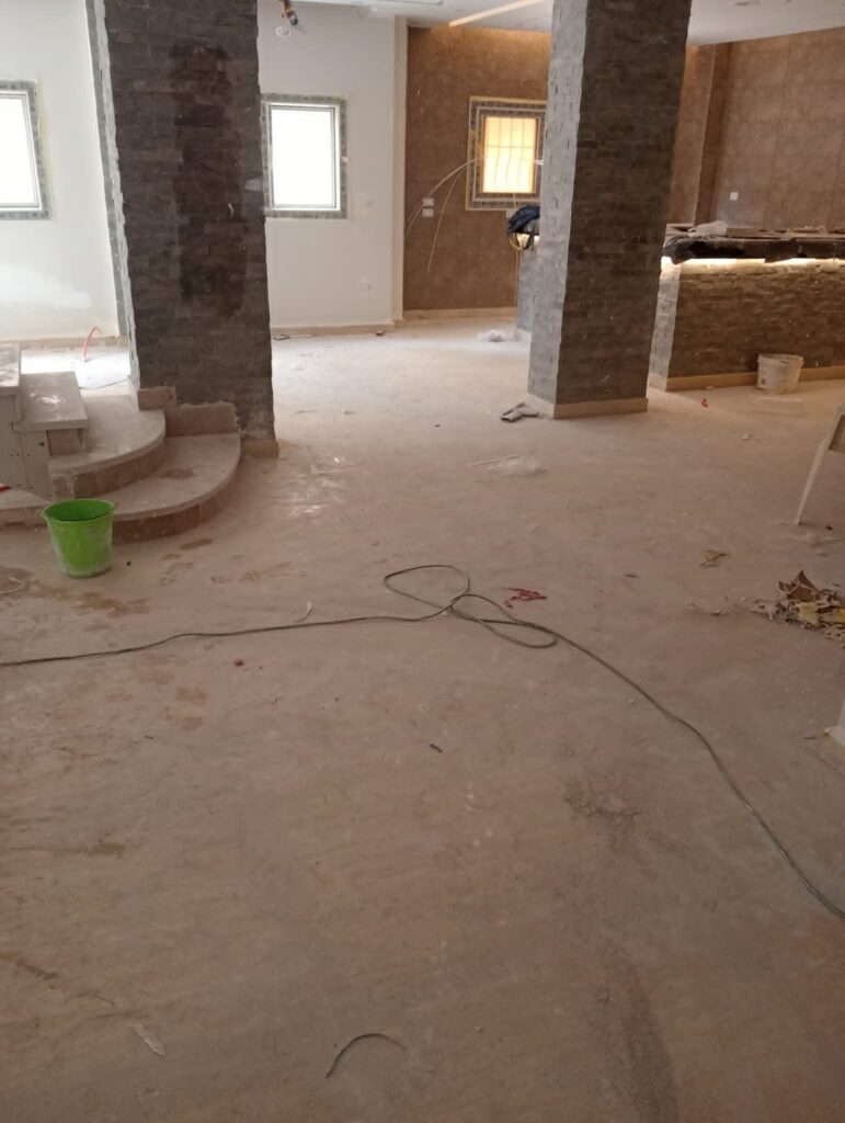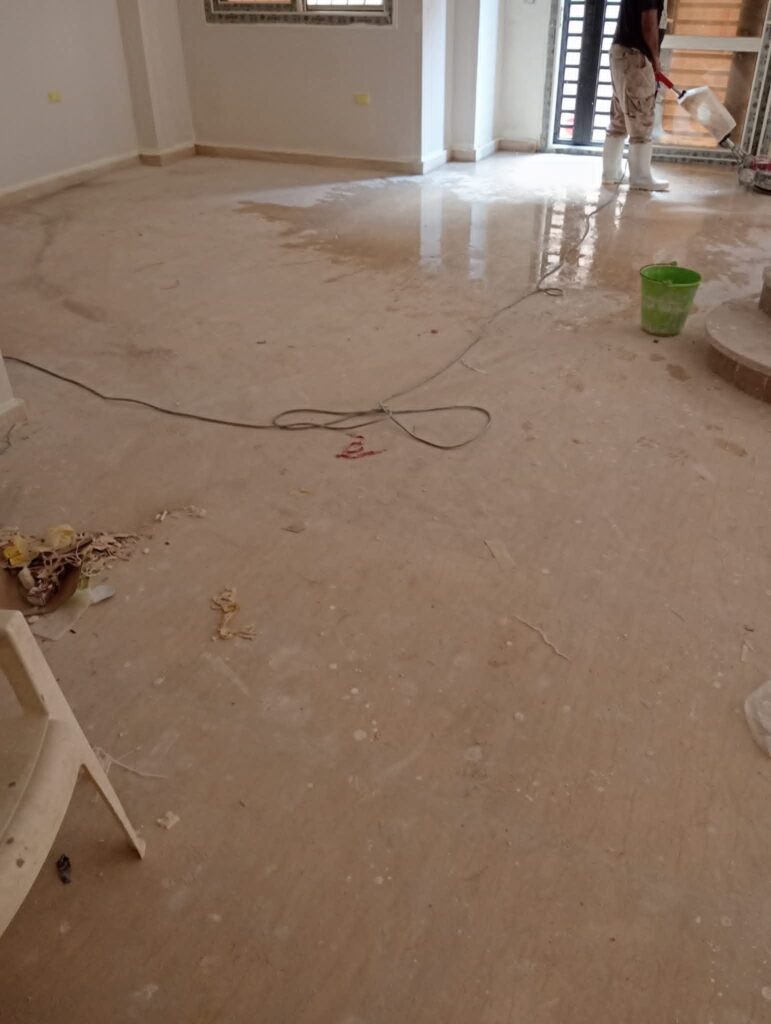 - التجفيف والتعطير النهائي للمدخل والدرج.