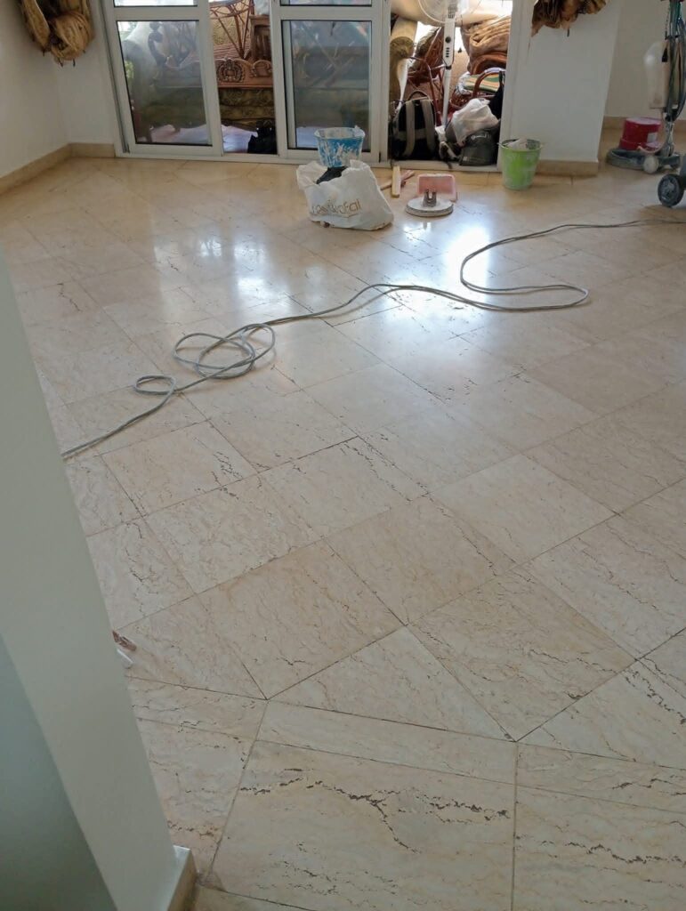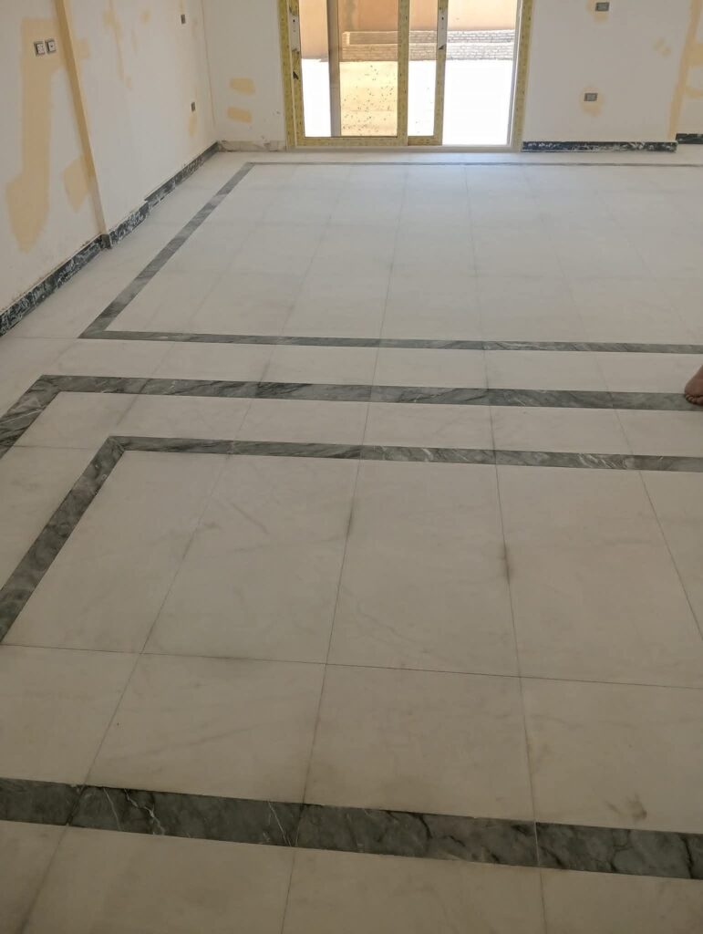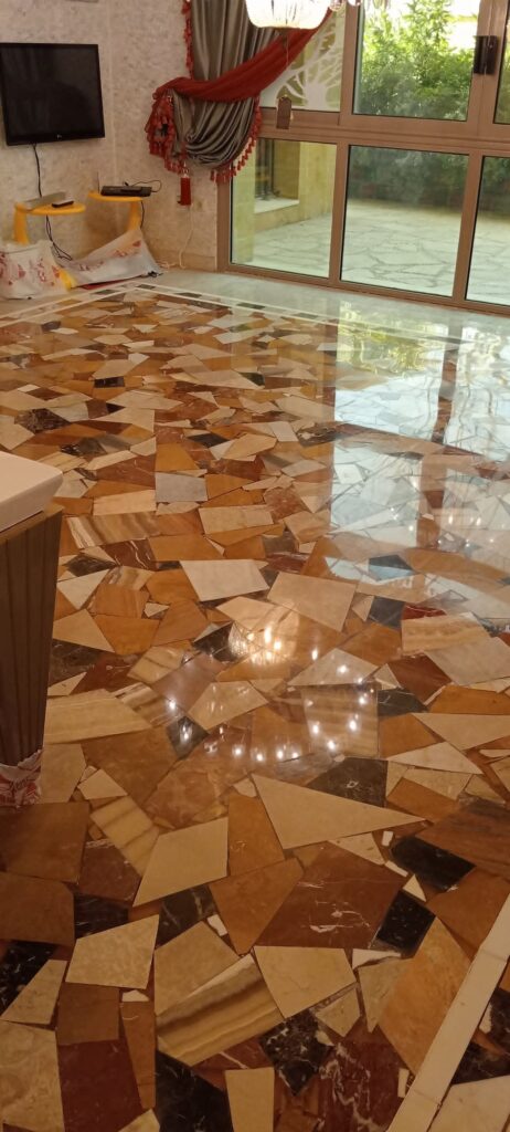- تعبئة الفراغات والكسور بمادة الجولي المناسبة للون الرخام.